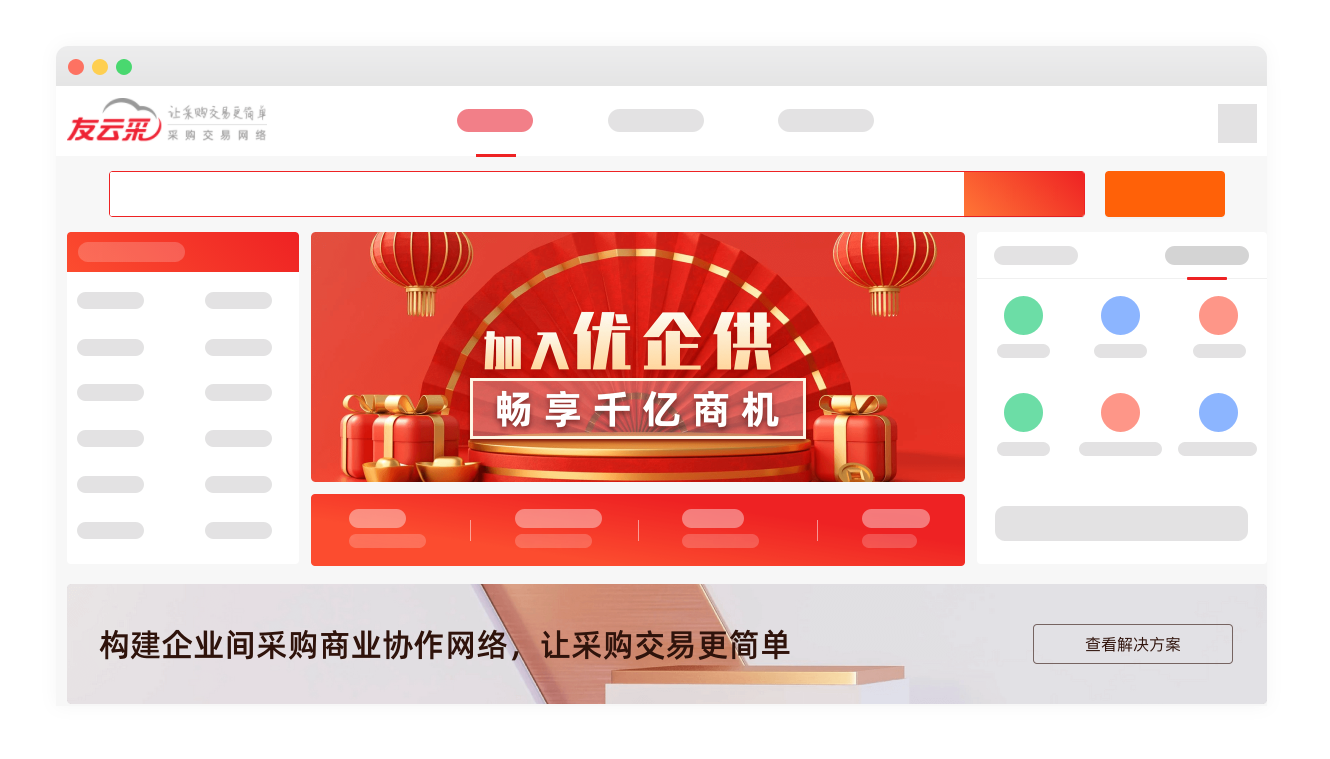 社會化網絡交易平臺:以連接、協同、共享、創新為核心理念,立足需方構建涵蓋采購尋源(招標/談判/詢價)、合同中心、采購協同、云采超市、廢舊拍賣、可視與分析、供應商關系管理的社會化網絡交易平臺