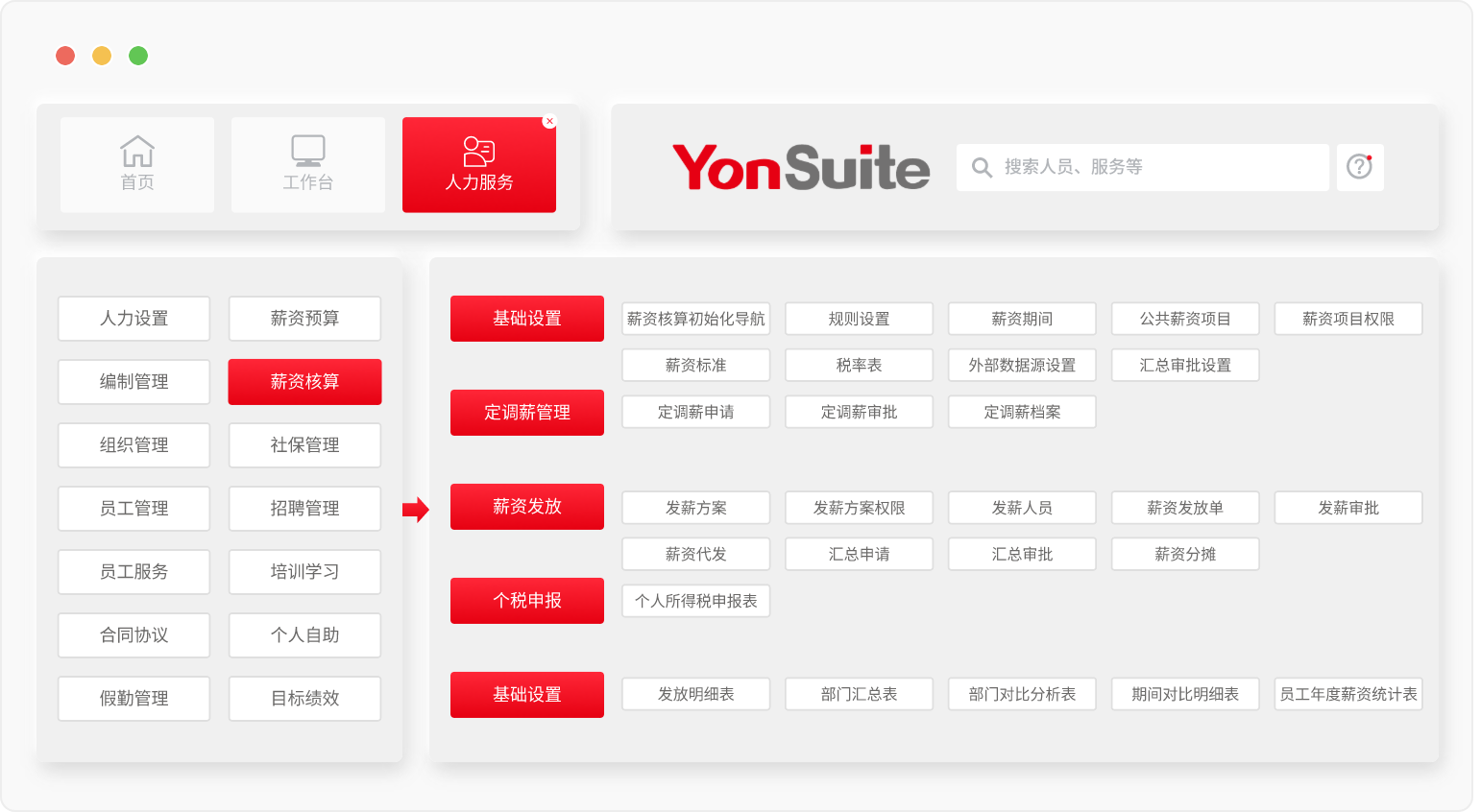 通過使用用友YonSuite人力資源系統,實現人力資源管理工作線上化,組織編制清晰化,崗位職級矩陣化,入轉調離流程化,選用育留智能化,績效考核公平化,人力分析多維化,晉升發展依據化,發薪報稅自動化。