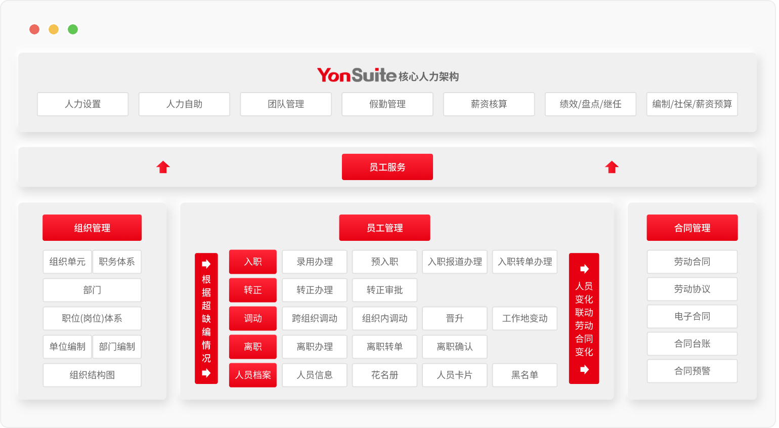 用友人力資源管理融合了先進的管理理念和實踐,為國內外成長型集團企業及各類組織提供全生命周期人力資源管理解決方案,包括面向多組織集團的人力資源集團管控、核心人力資源管理、基于流程的精細化勞動力管理、以及目標績效、招聘培訓、組織發展為核心的人才管理。