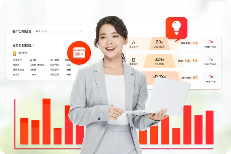 ●智能客戶分析,核心/重要/普通客戶分層運營,提產出、防流失;