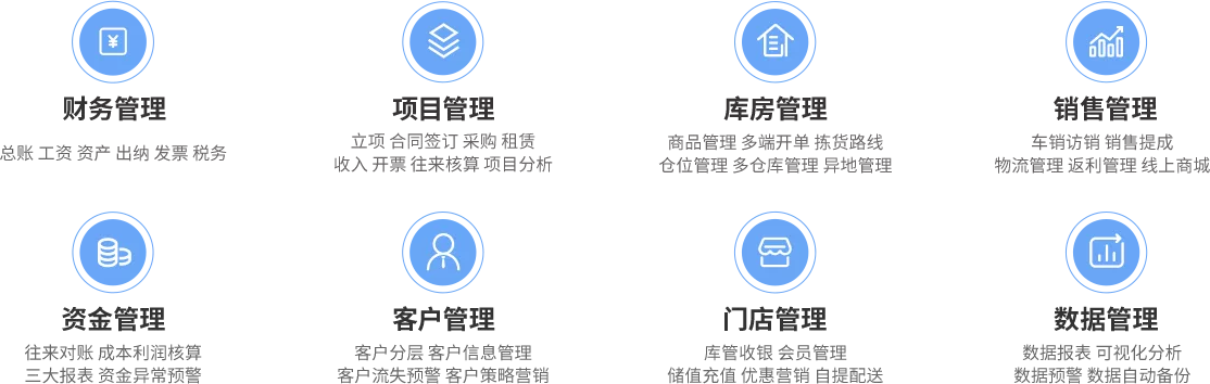√總賬管理 √資產管理 √發票管理 √往來對賬