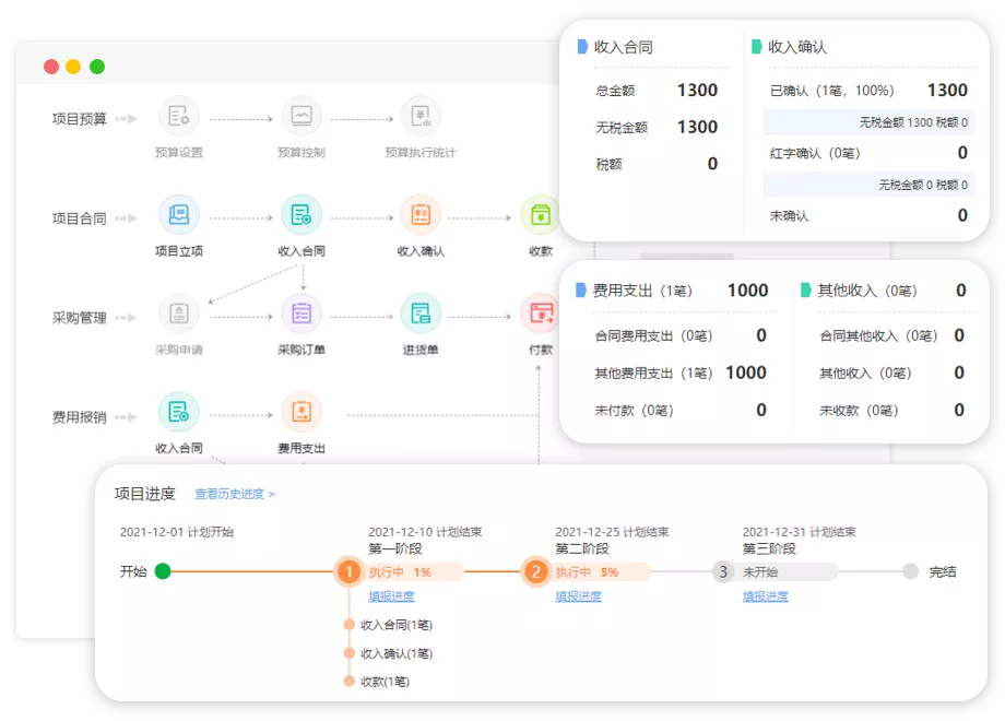 項目進度及結算回款一體化,項目人料機費核算一體化。