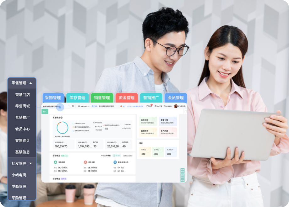 隨時查看銷售數據、資金收支、庫存狀態等信息。