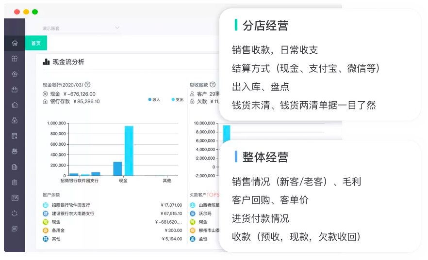 總賬、工資、資產、出納、發票、 稅務一體化管理。
