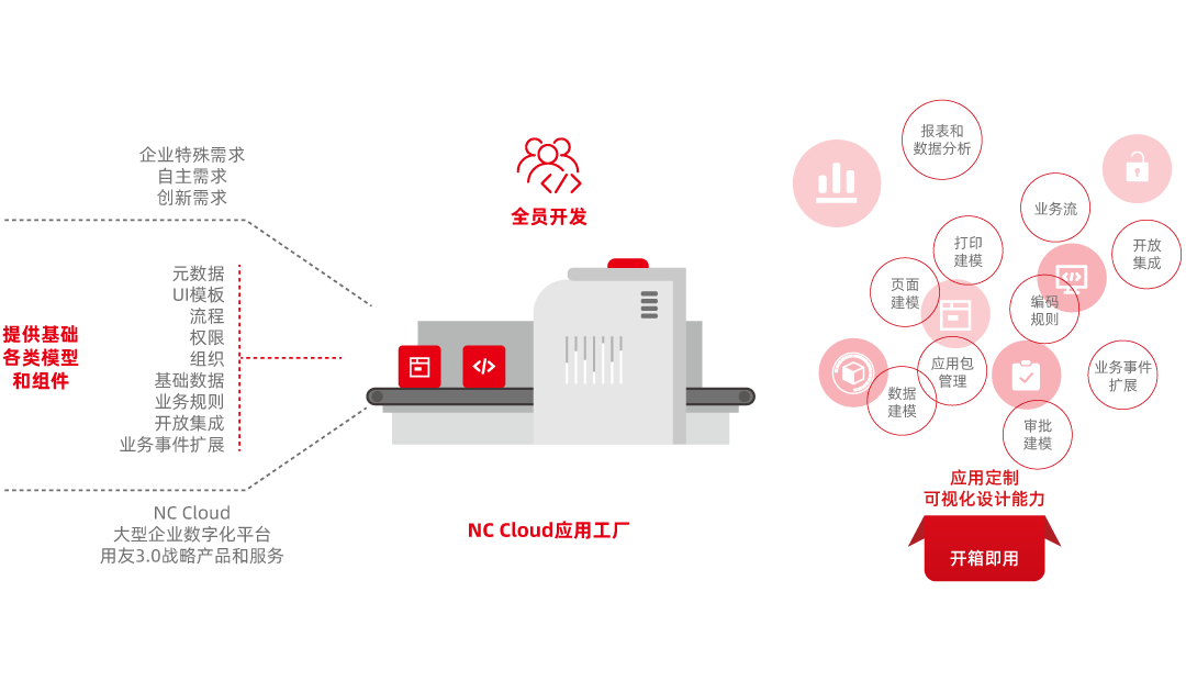 元數(shù)據(jù)、UI模板、流程、權(quán)限、組織、基礎(chǔ)數(shù)據(jù)、業(yè)務(wù)規(guī)則、開放集成等基礎(chǔ)模板和組件